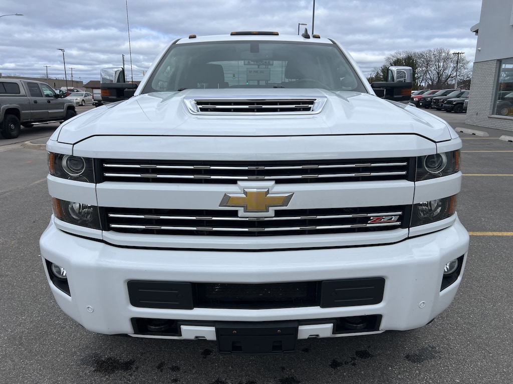 LTZ PLUS PACKAGE, FOR CREW CAB AND DOUBLE CAB includes (JF4) power adjustable pedals, (UQA) Bose premium audio system, (UVD) heated leather-wrapped steering wheel and (UD5) Front and Rear Park Assist, LPO, ASSIST STEPS - 6 CHROMED RECTANGULAR, SEATING, HEATED AND VENTED PERFORATED LEATHER-APPOINTED FRONT BUCKET, SEATS, FRONT FULL-FEATURE LEATHER-APPOINTED BUCKET WITH (KA1) HEATED SEAT CUSHIONS AND SEAT BACKS. Includes 10-way power driver and front passenger seat adjusters, including 2-way power lumbar control, 2-position driver memory, adjustable head restraints, (D07) floor console storage pockets and (K4C) wireless charging. AUDIO SYSTEM, CHEVROLET MYLINK RADIO WITH NAVIGATION AND 8 DIAGONAL COLOR TOUCH-SCREEN, AM/FM STEREO with seek-and-scan and digital clock, includes Bluetooth® streaming audio for music and select phones; USB ports; auxiliary jack; voice-activated technology for radio and phone; and Shop with the ability to browse, select and install apps to your vehicle. Apps include Pandora, iHeartRadio, The Weather Channel and more. CUSTOM SPORT EDITION includes (AQC) Appearance Package, (UD5) front and rear park assist, (TC7) body-color grille with chrome bars, (VB5) body-color front bumper, (VT5) body-color rear bumper, (CGN) spray-on bedliner and (PYV) 18 chromed aluminum wheels on SRW and (RS7) 17 forged polished aluminum wheels on DRW. STEERING WHEEL, HEATED, LEATHER WRAPPED WITH AUDIO AND CRUISE CONTROLS, ENGINE, DURAMAX 6.6L TURBO DIESEL V8, B20-DIESEL COMPATIBLE (445 hp [332 kW] @ 2800 rpm, 910 lb-ft of torque [1220 Nm] @ 1600 rpm) Includes capped fuel fill, (K40) exhaust brake and (K05) engine block heater. TRANSMISSION, ALLISON 1000 6-SPEED AUTOMATIC, ELECTRONICALLY CONTROLLED with overdrive, electronic engine grade braking and tow/haul mode. Chevrolet LTZ with Summit White exterior and Jet Black interior features a 8 Cylinder Engine with 445 HP at 2800 RPM*.