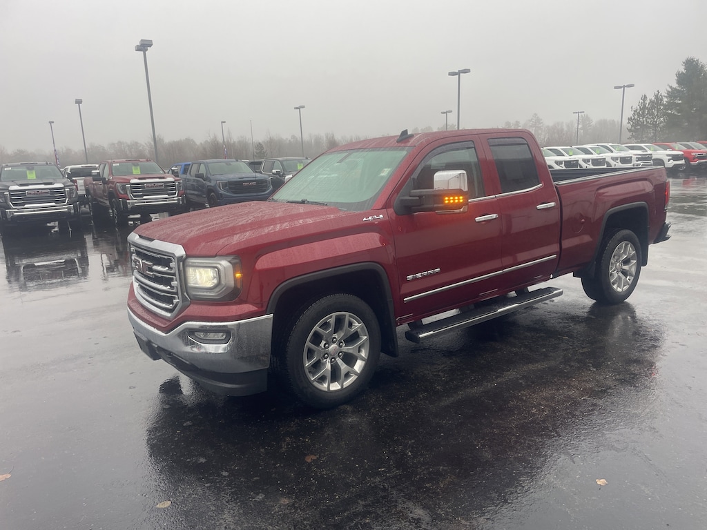 Heated Leather Seats, WiFi Hotspot, Dual Zone A/C, Remote Engine Start, Onboard Communications System, CD Player, Back-Up Camera READ MORE!KEY FEATURES INCLUDE4x4, Back-Up Camera, CD Player, Onboard Communications System, Trailer Hitch, Chrome Wheels, Remote Engine Start, Dual Zone A/C, WiFi Hotspot. Privacy Glass, Keyless Entry, Steering Wheel Controls, Alarm, Electronic Stability Control. GMC SLT with Red Quartz Tintcoat exterior and Jet Black interior features a 8 Cylinder Engine with 420 HP at 5600 RPM*.OPTION PACKAGESENGINE, 6.2L ECOTEC3 V8 WITH ACTIVE FUEL MANAGEMENT, DIRECT INJECTION and Variable Valve Timing, includes aluminum block construction, (420 hp [313 kW] @ 5600 rpm, 460 lb-ft of torque [624 Nm] @ 4100 rpm), SLT PREMIUM PACKAGE includes (UQA) Bose premium audio system and (RD5) 20 x 9 polished aluminum wheels With Crew Cab model includes (BVQ) 6 rectangular chrome tubular assist steps. With Double Cab model includes (VXH) 6 rectangular chrome tubular assist steps.), LPO, ASSIST STEPS, CHROMED TUBULAR, 6 RECTANGULAR, SEATS, FRONT FULL-FEATURE LEATHER-APPOINTED BUCKET with (KA1) heated seat cushions and seat backs. Includes 10-way power driver and front passenger seat adjusters, including 2-way power lumbar control, 2-position driver memory, adjustable head restraints, (D07) floor console and storage pockets. (Includes (K4C) wireless charging. MIRRORS, OUTSIDE HEATED POWER-ADJUSTABLE VERTICAL TRAILERING, MEMORY-EQUIPPED, UPPER GLASS, POWER-FOLDING AND MANUAL EXTENDING, CHROME; Includes integrated turn signal indicators, consisting of 51 square inch flat mirror surface positioned over a 24.5 square inch convex mirror surface with a common head and lower convex spotter glass (convex glass is not heated and not power adjustable) and addition of auxiliary cargo lamp for backing up (helps to see trailer when backing up with a trailer) and amber auxiliary clearance lamp, LPO, ALL-WEATHER FLOOR LINER, AUDIO SYSTEM, 8 DIAGONAL COLOR TOUCH SCREEN WITH GMC INFOTAINMENT SYSTEM, AM/FM/SIRIUSXM, HD RADIO with USB ports, auxiliary jack, Bluetooth® streaming audio for music and most phones, Pandora Internet radio and voice-activated technology for radio and phone (STD), TRANSMISSION, 8-SPEED AUTOMATIC, ELECTRONICALLY CONTROLLED with overdrive and tow/haul mode. Includes Cruise Grade Braking and Powertrain Grade Braking.VEHICLE REVIEWSEdmunds.coms review says Around town, the Sierras brakes are friendly and capable. Like the brakes, the steering is easy and gives you enough confidence to pilot this truck around town.. AutoCheck One OwnerHorsepower calculations based on trim engine configuration. Please confirm the accuracy of the included equipment by calling us prior to purchase.
