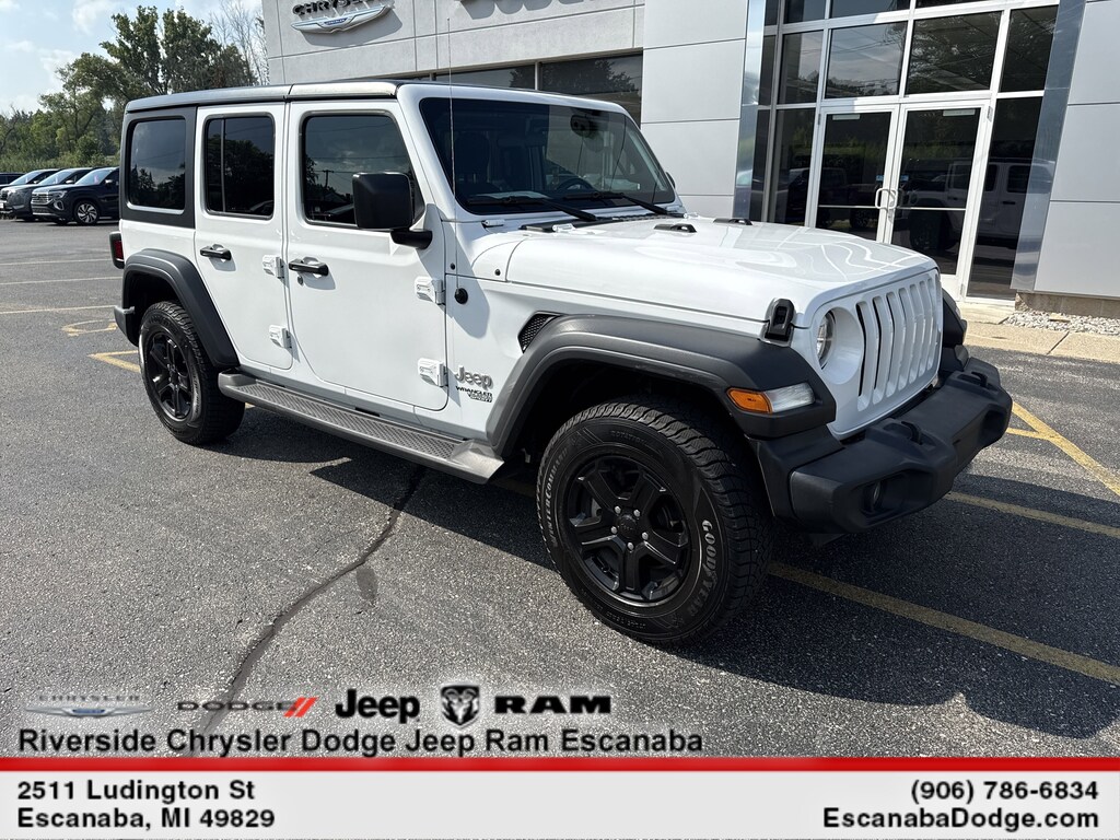 TRANSMISSION: 8-SPEED TORQUEFLITE AUTO 4-Wheel Anti-Lock Disc Brakes, Tip Start, Dana M200 Rear Axle, Selec-Speed Control, BLACK FREEDOM TOP 3-PIECE HARDTOP Freedom Panel Storage Bag, Rear Window Defroster, Rear Window Wiper w/Washer, TECHNOLOGY GROUP, Selectable Tire Fill Alert, For SiriusXM Info, Call 888-539-7474, SiriusXM Satellite Radio, 7 Full-Colour Driver Info Display, SIDE STEPS W/DIAMOND-PLATE PATTERN, ENGINE: 3.6L PENTASTAR VVT V6 W/ETORQUE 600 Amp Maintenance Free Battery, 48-Volt Belt Starter Generator, GVWR: 2,476 kgs (5,460 lbs), Non-Locking Fuel-Filler Cap, Engine Oil Cooler, Delete Alternator, QUICK ORDER PACKAGE 25S SPORT S Engine: 3.6L Pentastar VVT V6 w/eTorque, Transmission: 8-Speed TorqueFlite Auto, Front 1-Touch Down Power Windows, Speed-Sensitive Power Locks, Sport S, Power Heated Exterior Mirrors, Leather-Wrapped Steering Wheel, Deep Tint Sunscreen Windows, Security Alarm, Remote Keyless Entry, Sun Visors w/Illuminated Vanity Mirror, RADIO: UCONNECT 4 W/7 DISPLAY. Jeep Unlimited Sport with Bright White exterior and Black interior features a V6 Cylinder Engine with 285 HP at 6400 RPM*.