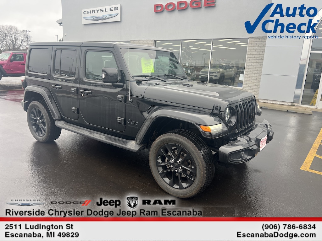 QUICK ORDER PACKAGE 25N HIGH ALTITUDE Engine: 3.6L Pentastar VVT V6 w/eTorque, Transmission: 8-Speed TorqueFlite Auto, Heated Steering Wheel, Remote Start System, Front Heated Seats, Leather-Wrapped Shift Knob, Body-Colour Fuel-Filler Door, High Altitude Package, Body-Colour Door Handles, Dana M210 Wide HD Tube Front Axle, Body-Colour Grille w/Gloss Black, Sport Suspension, Body-Colour Front Bumper, Body-Colour Rear Bumper w/Step Pads, High Altitude Badge, 4-Wheel Anti-Lock Disc Brakes, Exterior Mirrors w/Turn Signals, Blind-Spot/Rear Cross-Path Detection, Park-Sense Rear Park Assist System, Caramel Interior Accents, Wrapped I/P Bezel w/Caramel Stitching, Daytime Running Lights w/LED Accents, LED Fog Lamps, LED Reflector Headlamps, Body-Colour Fender Flares, Dana M220 Wide Rear Axle, TRANSMISSION: 8-SPEED TORQUEFLITE AUTO (STD), TRAILER TOW & HD ELECTRICAL GROUP Class II Hitch Receiver, 700 Amp Maintenance Free Battery, 4- and 7-Pin Wiring Harness, 240 Amp Alternator, 4 Auxiliary Switches, ADVANCED SAFETY GROUP Advanced Brake Assist, Automatic High-Beam Headlamp Control, Forward Collision Warn/Active Braking, ENGINE: 3.6L PENTASTAR VVT V6 W/ETORQUE 600 Amp Maintenance Free Battery, 48-Volt Belt Starter Generator, Engine Oil Cooler, Delete Alternator, GVWR: 2,517 kgs (5,550 lbs), BODY-COLOUR 3-PIECE HARDTOP. Jeep High Altitude with Black exterior and Black interior features a V6 Cylinder Engine with 285 HP at 6400 RPM*.