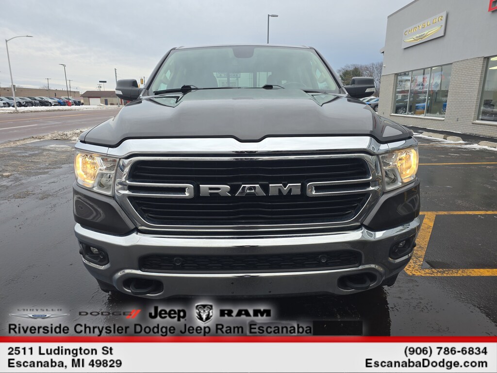 BIG HORN LEVEL 2 EQUIPMENT GROUP Rear Window Defroster, Auto-Dimming Rearview Mirror, Park-Sense Front & Rear Park Assist, Power Adjustable Pedals, Rear Power Sliding Window, Rear Dome Lamp w/On/Off Switch, Glove Box Lamp, Power 4-Way Driver Lumbar Adjust, 115V Rear Auxiliary Power Outlet, Power 8-Way Adjustable Driver Seat, Rear Media Hub w/2 USB Ports, Front Heated Seats, Heated Steering Wheel, Door Trim Panel Foam Bottle Insert, Class IV Receiver Hitch, Dampened Tailgate, Security Alarm, Black Power Fold Heated Mirrors w/Signals, Big Horn Instrument Panel Badge, Remote Start System, 400W Inverter, A/C w/Dual-Zone Automatic Temperature Control, 115V Auxiliary Power Outlet - Front, 7 Customizable In-Cluster Display, Universal Garage Door Opener, 2nd Row In-Floor Storage Bins, Sun Visors, ENGINE: 5.7L HEMI VVT V8 W/FUELSAVER MDS Active Noise Control System, 180-Amp Alternator, Heavy-Duty Engine Cooling, GVWR: 3,220 kgs (7,100 lbs), Bright Dual Rear Exhaust Tips, HEMI Badge, WHEELS: 20 X 9 CHROME-CLAD ALUMINUM (WRK), TRANSMISSION: 8-SPEED AUTOMATIC. Ram Big Horn with Granite Crystal Metallic exterior and Black/Light Frost Beige interior features a 8 Cylinder Engine with 395 HP at 5600 RPM*.