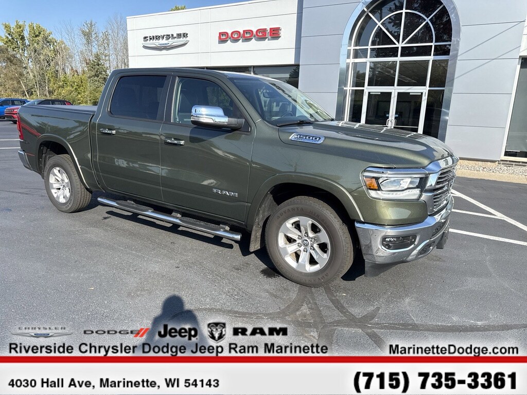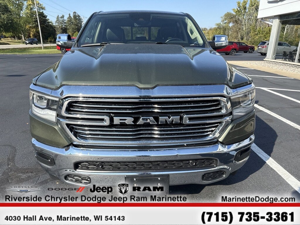 Leather Seats, 4x4, Heated Driver Seat, Cooled Driver Seat, Back-Up Camera, iPod/MP3 Input, Trailer Hitch, Aluminum Wheels, Dual Zone A/C, Apple CarPlay®, Heated Seats, Heated Leather Seats, Heated/Cooled Seats MP3 Player, Privacy Glass, Keyless Entry, Steering Wheel Controls, Child Safety Locks. Ram Laramie with Olive Green Pearlcoat exterior and Black interior features a 8 Cylinder Engine with 305 HP at 6400 RPM*.
