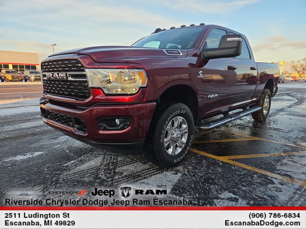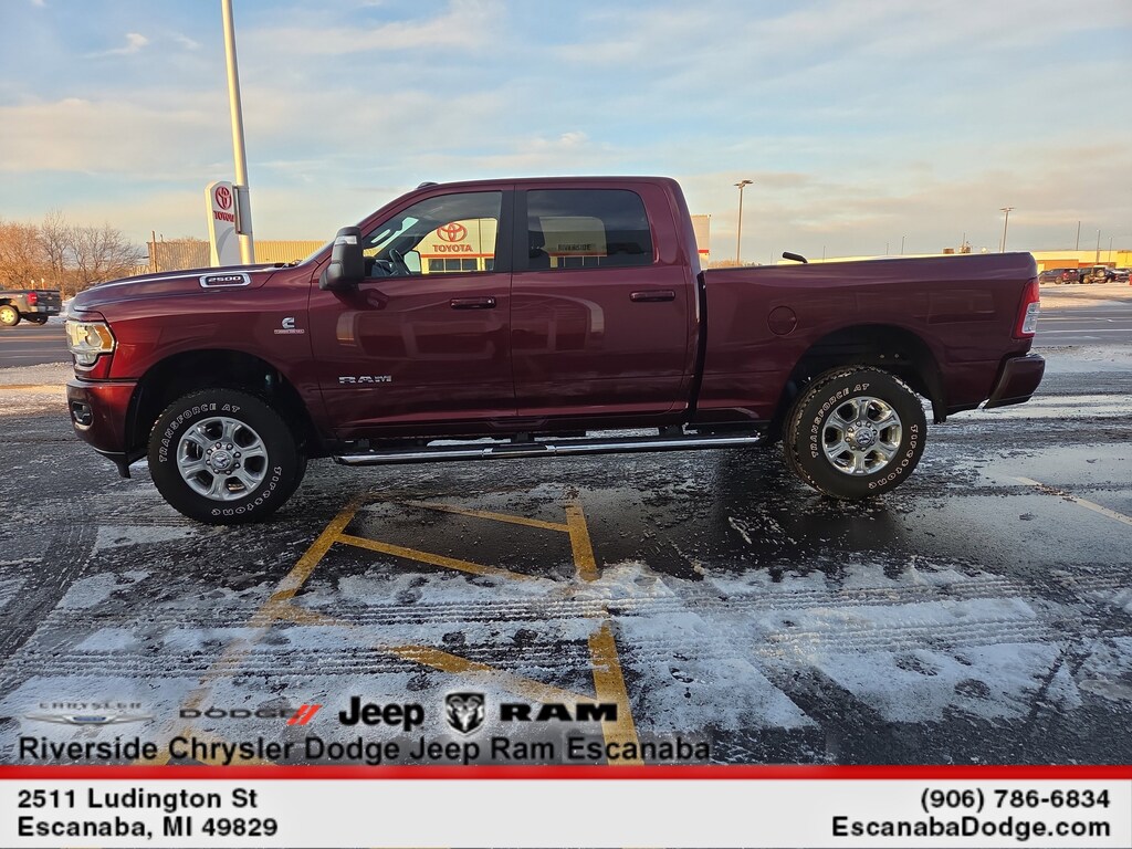 ENGINE: 6.7L I6 CUMMINS TURBO DIESEL Selective Catalytic Reduction (Urea), Dual 730 Amp Maintenance Free Batteries, Cummins Turbo Diesel Badge, Heavy Duty Engine Cooling, Tow Hooks, Diesel Exhaust Brake, Supplemental Heater, Front Bumper Sight Shields, Capless Fuel Fill w/o Discriminator, LEVEL 1 EQUIPMENT GROUP Google Android Auto®, For Details, Visit DriveUconnect.com, For More Info, Call 800-643-2112, Leather Wrapped Steering Wheel, Rear Dome w/On/Off Switch Lamp, Front Fog Lamps, Glove Box Lamp, Auto Power-Folding Mirrors, Footwell Courtesy Lamp, 4G LTE Wi-Fi Hot Spot, Mirror Running Lights, Radio: Uconnect 5 W w/8.4 Display, 8.4 Touchscreen Display, Foam Bottle Insert (Door Trim Panel), Apple CarPlay®, Big Horn IP Badge, Power Adjustable Convex Aux Mirrors, Forward & Reverse Utility Lights, Locking Lower Glove Box, Selectable Tire Fill Alert, SiriusXM Satellite Radio, Power Heated Fold Telescope Mirrors, Exterior Mirrors w/Supplemental Signals, Steering Wheel Mounted Audio Controls, Exterior Mirrors Courtesy Lamps, Dual Glove Boxes, 2nd Row In Floor Storage Bins, Power, RADIO: UCONNECT 5 NAV W/8.4 DISPLAY Google Android Auto®, For Details, Visit DriveUconnect.com, For More Info, Call 800-643-2112, GPS Navigation, 4G LTE Wi-Fi Hot Spot, SiriusXM w/360L, Connected Travel & Traffic Services, All R1 High Radios, 8.4 Touchscreen Display, Alexa Built-In, Apple CarPlay®, Off-Road Information Pages, Selectable Tire Fill Alert, Trailer Tow Pages, Disassociated Touchscreen Display, HD Radio, Air Conditioning ATC w/Dual Zone Control, All Radio Equipped Vehicles, CHROME FLAT WHEEL-TO-WHEEL SIDE STEPS, ANTI-SPIN DIFFERENTIAL REAR AXLE, HEATED SEATS & WHEEL GROUP Heated Steering Wheel, Steering Wheel Mounted Audio Controls, Heated Front Seats, Leather Wrapped Steering Wheel, BLACK, PREMIUM CLOTH BUCKET SEATS Bucket Seats, Manual Adjust 4-Way Front Passenger Seat, Power Adjust 8-Way Driver Seat, Rear 60/40 Folding Seat, Front Seat Back Map Pockets, Power 2-Way Driver Lumbar Adjust, Full Length Upgraded Floor Console, REMOTE START SYSTEM, TRANSMISSION: 6-SPEED AUTOMATIC (68RFE). Ram Big Horn with Delmonico Red Pearlcoat exterior and Black interior features a Straight 6 Cylinder Engine with 370 HP at 2800 RPM*.
