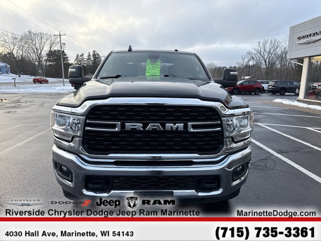 DIESEL GRAY/BLACK, PREMIUM CLOTH 40/20/40 BENCH SEAT Storage Tray, Rear 60/40 Folding Seat, Front Armrest w/Cupholders, Remote USB Port - Charge Only, Front Center Seat Cushion Storage, Manual Adjust 4-Way Front Passenger Seat, Power Adjust 8-Way Driver Seat, Front Seat Back Map Pockets, Power 2-Way Driver Lumbar Adjust, CHROME FLAT CAB-LENGTH SIDE STEPS, 9 ALPINE SPEAKERS W/SUBWOOFER, ANTI-SPIN DIFFERENTIAL REAR AXLE, PROTECTION GROUP Transfer Case Skid Plate Shield, Tow Hooks, LEVEL 1 EQUIPMENT GROUP Google Android Auto®, For Details, Visit DriveUconnect.com, For More Info, Call 800-643-2112, Leather Wrapped Steering Wheel, Rear Dome w/On/Off Switch Lamp, Front Fog Lamps, Glove Box Lamp, Auto Power-Folding Mirrors, Footwell Courtesy Lamp, 4G LTE Wi-Fi Hot Spot, Mirror Running Lights, Radio: Uconnect 5 W w/8.4 Display, 8.4 Touchscreen Display, Foam Bottle Insert (Door Trim Panel), Wheels: 18 x 8.0 Polished Aluminum, Apple CarPlay®, Big Horn IP Badge, Power Adjustable Convex Aux Mirrors, Forward & Reverse Utility Lights, Locking Lower Glove Box, Selectable Tire Fill Alert, SiriusXM Satellite Radio, Power Heated Fold Telescope Mirrors, Exterior Mirrors w/Supplemental Signals, Steering Wheel Mounted Audio Controls, Exterior Mirrors Courtesy Lamps, Dual Glove, TRANSMISSION: 8-SPEED AUTO (8HP75-LCV) (STD), ENGINE: 6.4L V8 HEAVY DUTY HEMI MDS (STD).